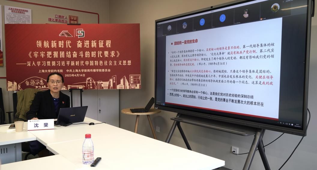 4月14日下午,中国浦东干部学院党性教育研究中心主任、ac米兰官网中文网站马克思主义学院博士生导师、中国辩证唯物主义研究会理事、上海市政治经济学专委会副秘书长沈斐教授在新闻传播学院智能媒体传播创新实验中心413会议室开展了主题为《牢牢把握团结奋斗的时代要求》的专题讲座。新闻传播学院党委副书记、副院长王智君主持,学院教师、本科生、研究生代表参加了讲座。