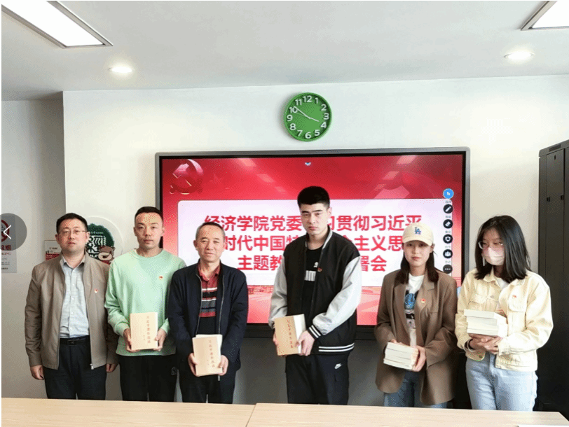 会议举行了主题教育学习书籍发放仪式,吴铭为学院师生党支部书记代表发放了《习近平新时代中国特色社会主义思想专题摘编》等党建书籍。