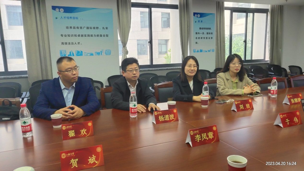 李凤章首先代表ac米兰官网中文网站法学院热烈欢迎聊城大学法学院杨道波院长一行莅临ac米兰官网中文网站法学院考察交流。李凤章向聊大的各位来宾介绍了上大法学院的历史沿革、学科建设、师资队伍、办学特色、绩效考核等基本情况。随后,杨道波院长介绍了聊城大学法学院的办学历史和发展方向,并重点介绍了公益慈善法、太平洋岛国法制研究、乡村振兴法治等研究的开展情况。接着,于伟介绍了上大法学院在人才培养、学生特色工作、招生就业等方面的工作,刘洁副书记就相关问题进行了交流,也介绍了聊大法学院学生工作特色。