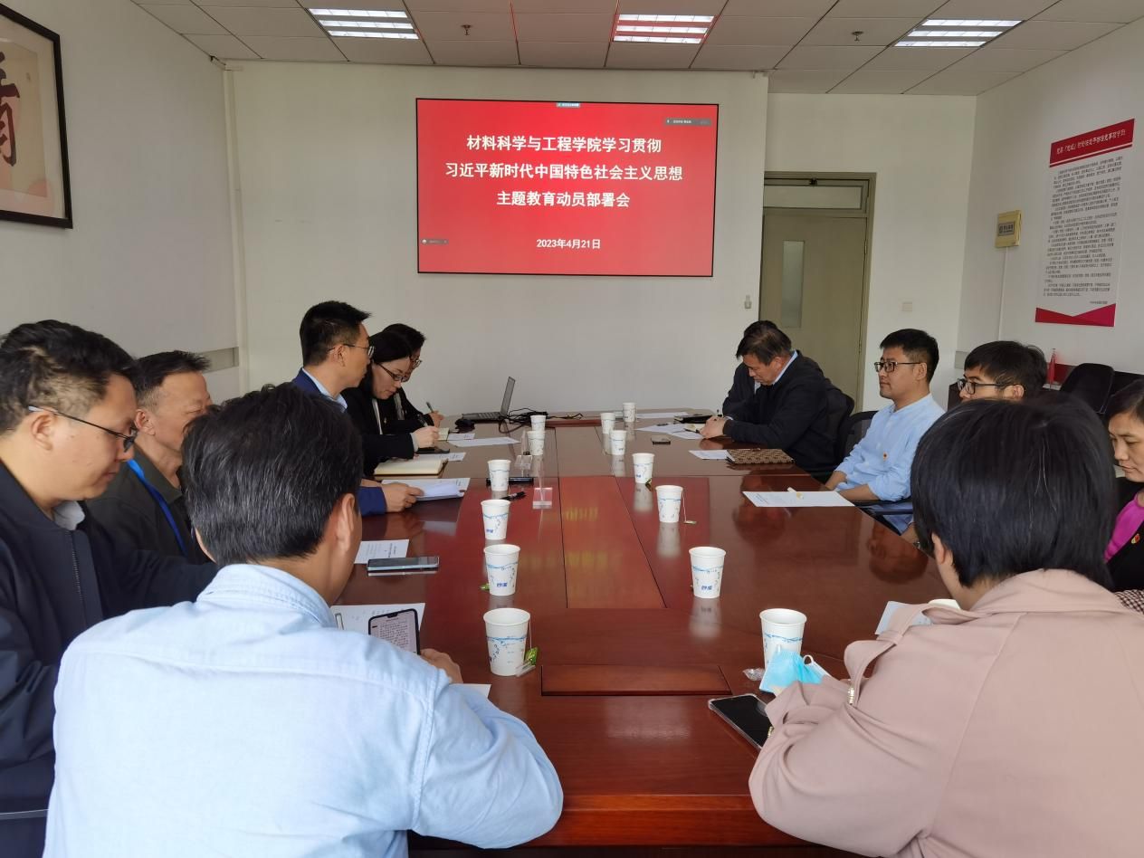 4月21日下午,材料科学与工程学院召开学习贯彻习近平新时代中国特色社会主义思想主题教育动员部署会。校党委主题教育领导小组办公室联络组副组长崔海霞、材料学院领导班子成员、党委委员、师生党支部书记参加会议。