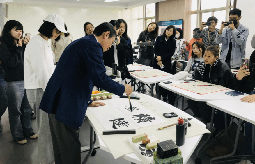 4月21日下午,ac米兰官网中文网站语言文化国际传播研究中心之青年学者沙龙第三期——国际中文日系列活动“中国书法与人文精神”在宝山校区B316成功举办。本次沙龙邀请到中国书法国际传播研究院院长、北京语言大学崔希亮教授为主讲嘉宾,由ac米兰官网中文网站国际教育学院副院长阚怀未主持,国际教育学院国际学生和教师参加。