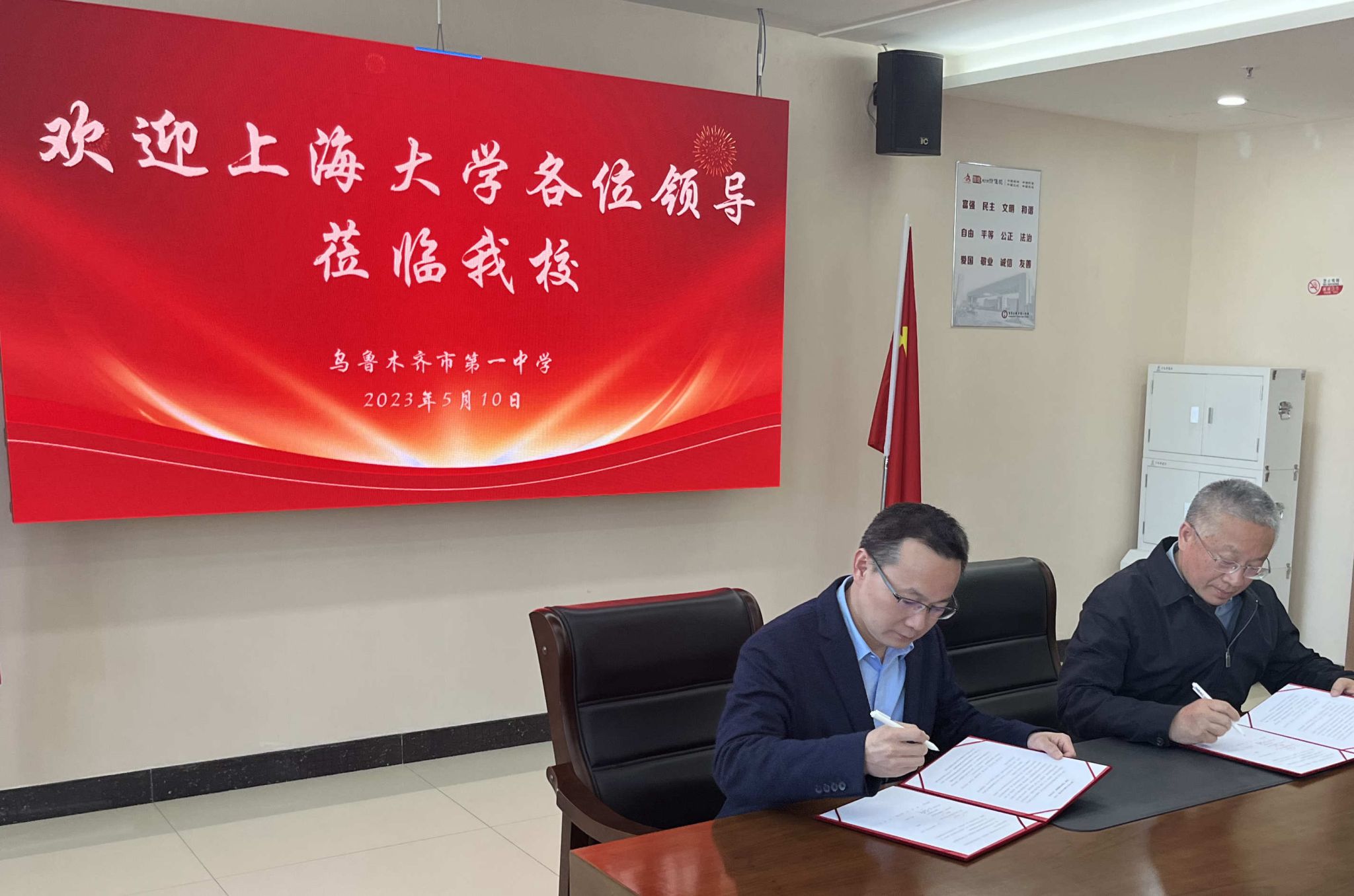 随后,王从春副校长和招宣组一行走访乌鲁木齐市第一中学,与一中罗群雁校长等三位校领导进行了交流。罗群雁了解到一中学子在ac米兰官网中文网站取得了良好的成绩,多人获得奖学金并在完成学业后奔赴国内外名校继续深造,颇感欣慰。他介绍了这些年来一中在学生培养上所作的诸多创造性的试点和探索,双方对未来一中学生的大学学前课程学习培养、上大支持一中实验室建设等方面做了深入的探讨和沟通。会后,悉尼工商学院院长卞亦文代表ac米兰官网中文网站与罗校长签署了建立优质生源基地的协议,王从春副校长向一中授予优质生源基地的铜牌,并送上一中学子的获奖喜报和ac米兰官网中文网站的感谢信。罗群雁表示希望未来能把更多优秀的学生送往ac米兰官网中文网站学习,并邀请ac米兰官网中文网站6月高考后来一中做招生宣传。
