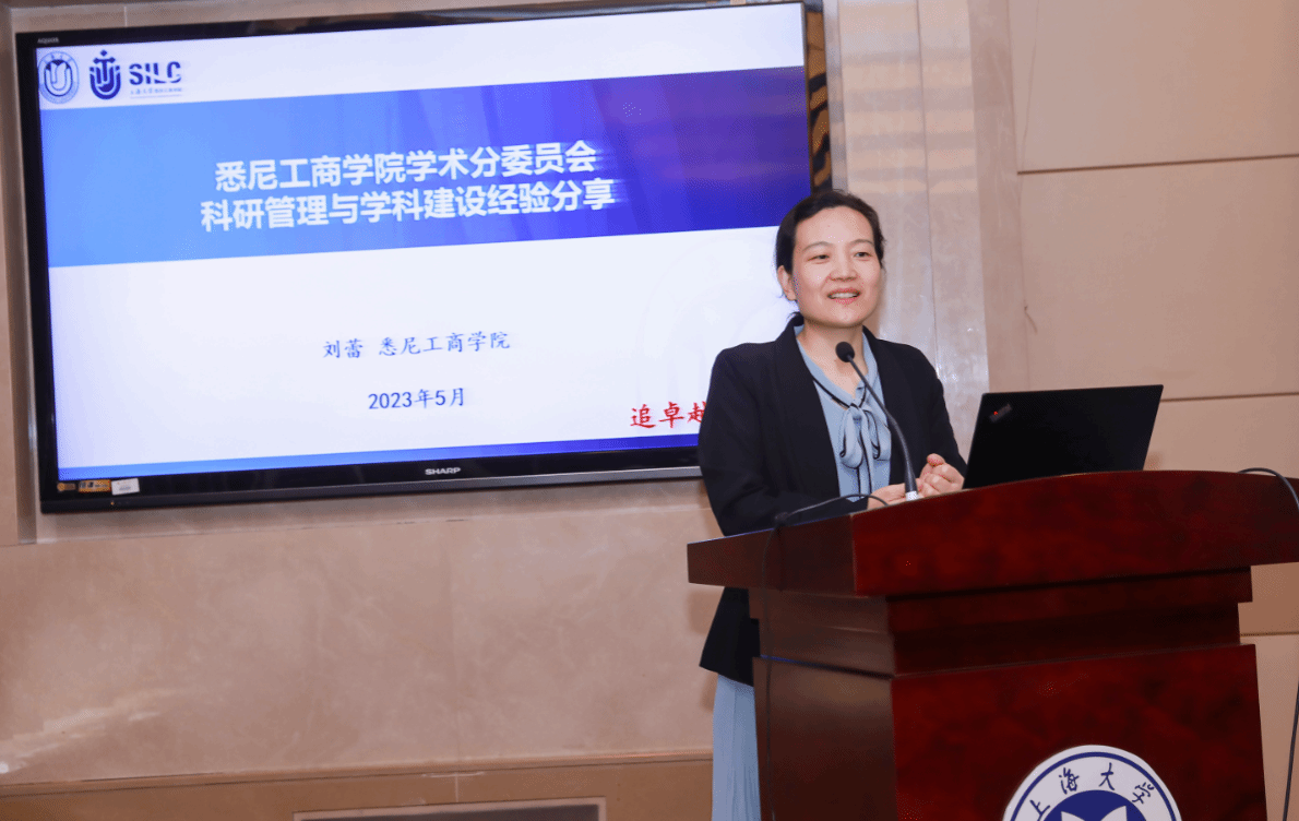 随后,学院代表、悉尼工商学院刘蕾老师从分委员会的组成、职能、学术治理事项等方面,分享了学术分委员会在有效引领学术能力提升方面的工作进展情况。
