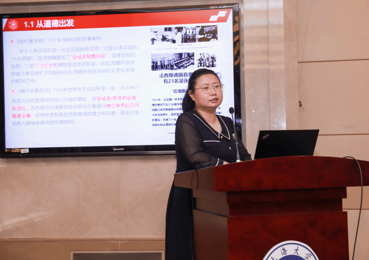 围绕“科技伦理治理”主题,上海交通大学负责涉及人的科技研究伦理审查的郭舒扬老师作了《科技伦理治理——审查程序及面临的挑战》的报告。报告从国内科技伦理发展的现状,涉及伦理审查内容、规范审查程序,以及科技伦理面临的挑战与思考等方面详细介绍了科技伦理治理方面的知识,为学校后续开展科学研究和伦理审查工作提供了有益借鉴。