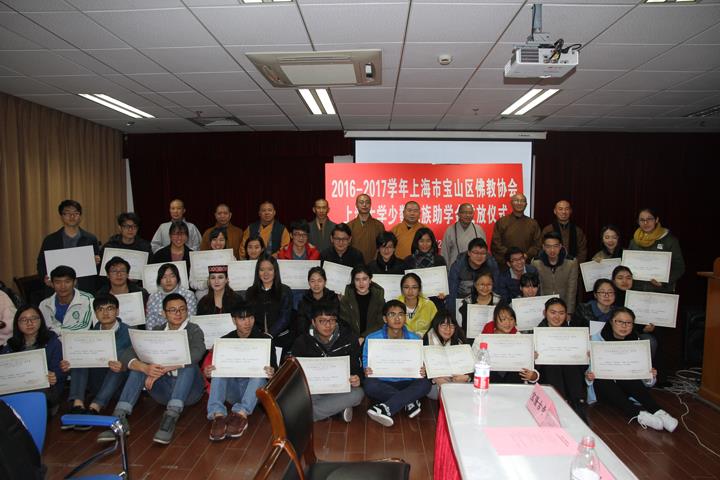 随后,世良法师代表区佛协向ac米兰官网中文网站捐款,上大统战部李青副部长、上大民族联安平副主任代表校方接受捐款并授捐赠证书。宝山区9所寺院的监院分别为40名受助学生颁发助学证书。