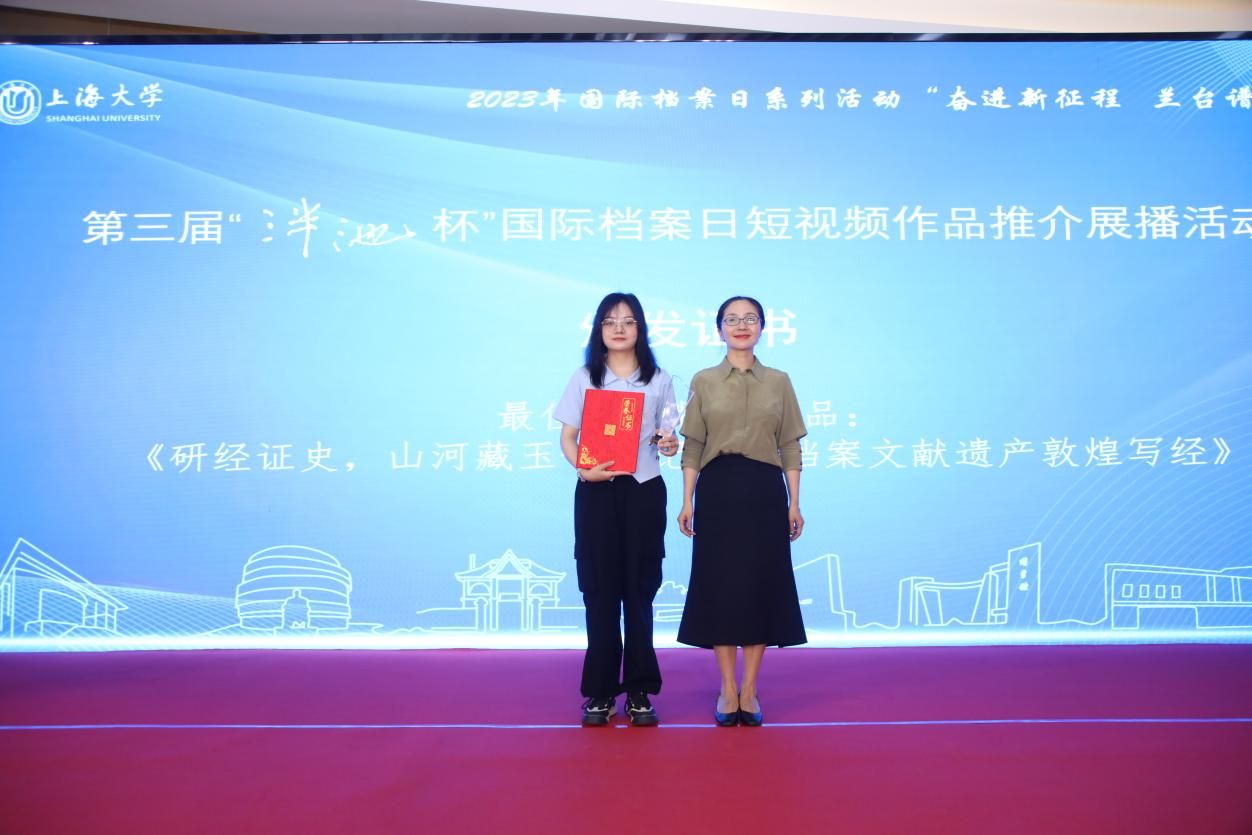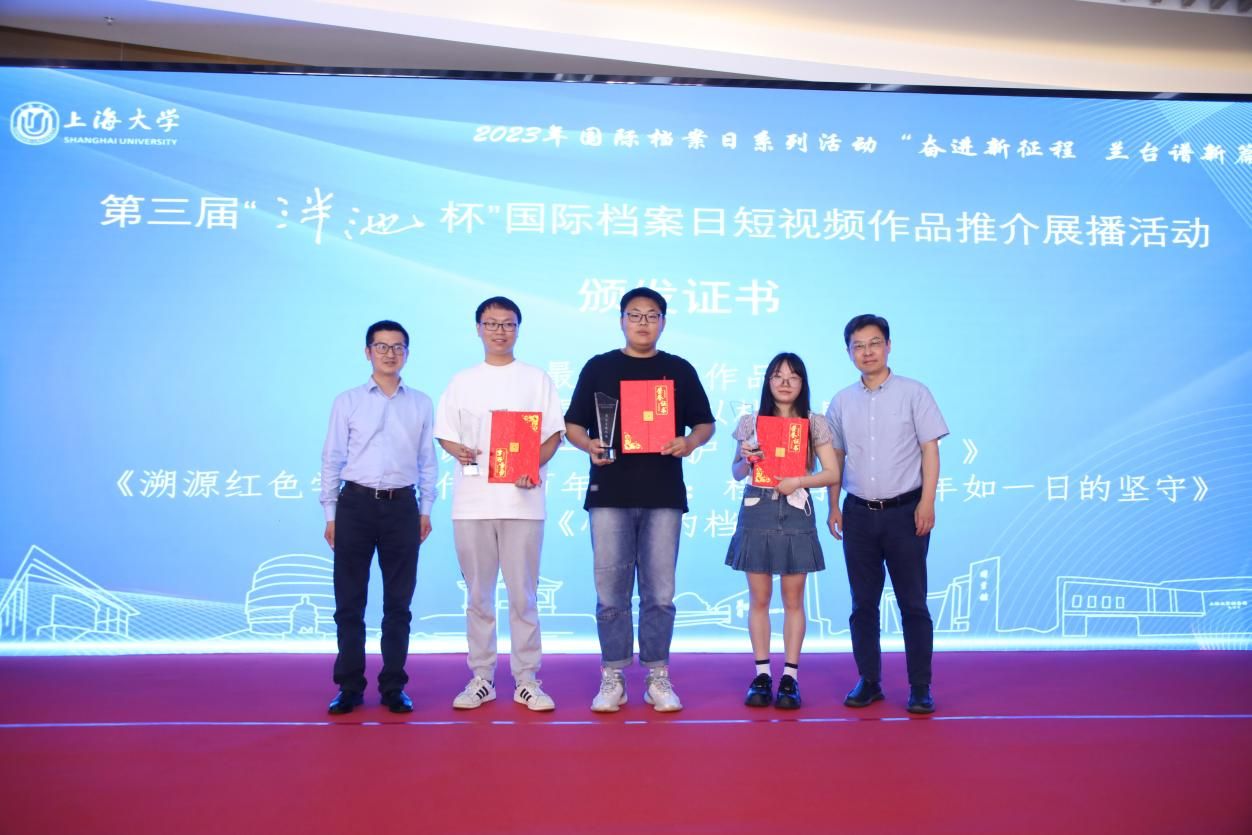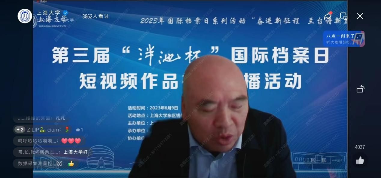 为庆祝第16个国际档案日,6月9日上午,由ac米兰官网中文网站主办、ac米兰官网中文网站档案馆和ac米兰官网中文网站文化遗产与信息管理学院承办、ac米兰官网中文网站博物馆协办,主题为“奋进新征程兰台谱新篇”的第三届“泮池杯”国际档案日短视频作品推介展播活动,在ac米兰官网中文网站钱伟长图书馆成功举行。本次活动通过ac米兰官网中文网站视频号进行了同步直播。出席本次活动有校党委副书记、纪委书记段勇,教育部高等学校档案学专业教学指导委员会副主任委员、南京大学信息管理学院教授吴建华,上海市档案学会高校档案专业委员会理事长、华东师范大学档案馆馆长汤涛,上海交通大学档案文博管理中心副主任、校史博物馆馆长欧七斤,党委宣传部副部长(融媒体中心主任)吴铭,学生工作办公室主任孟祥栋,团委书记冯凌燕,党委研究生工作部部长魏宏,文化遗产与信息管理学院党委书记丁华东,图书馆博物馆档案馆党委书记王远弟,博物馆馆长李明斌,文化遗产与信息管理学院副书记副院长韦淑珍、图书馆副馆长倪代川,获奖短视频作品团队代表,以及ac米兰师生共80余人,线上观众4089人。