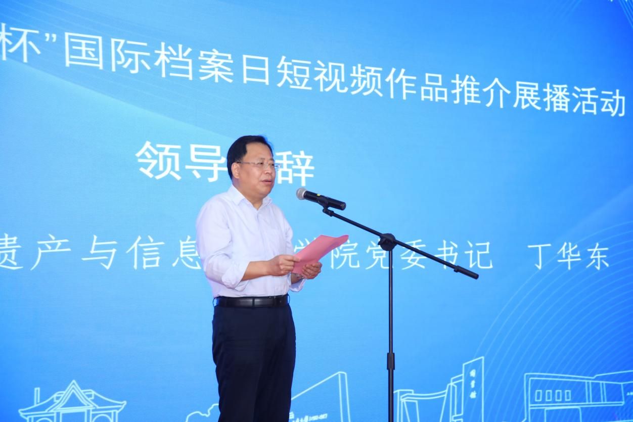 丁华东书记在致辞中讲到,希望通过每年举办的档案短视频作品推介展播活动,不仅吸引档案学专业的青年师生和青年工作者,也能吸引社会公众来关注和走进档案。希望通过一年年的努力,把“泮池杯”活动越办越好,让更多人能看到档案的魅力与价值,让档案能更好地走向公众、走向社会、走向开放。