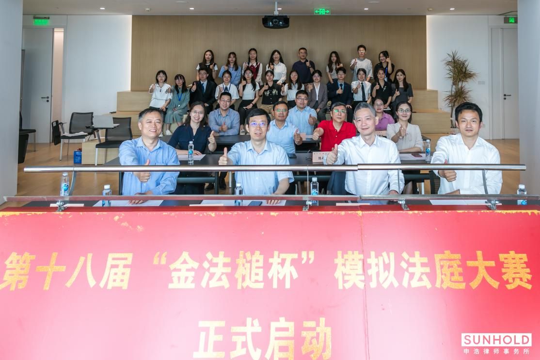 6月11日上午,全国高校第十七届“金法槌杯”模拟法庭大赛颁奖典礼暨第十八届“金法槌杯”模拟法庭大赛启动仪式在上海中心75层申浩会客厅顺利举行。