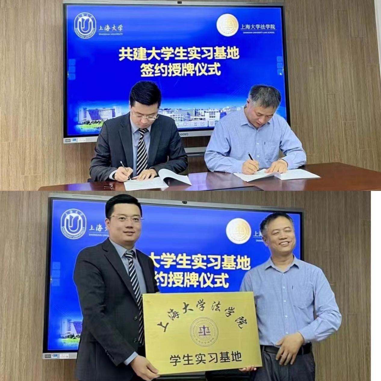 在法学院学生实习基地签约授牌仪式中,李凤章院长和张志超主任分别代表ac米兰官网中文网站法学院和上海铸达律师事务所签署协议,并授予“ac米兰官网中文网站法学院学生实习基地”铜牌。