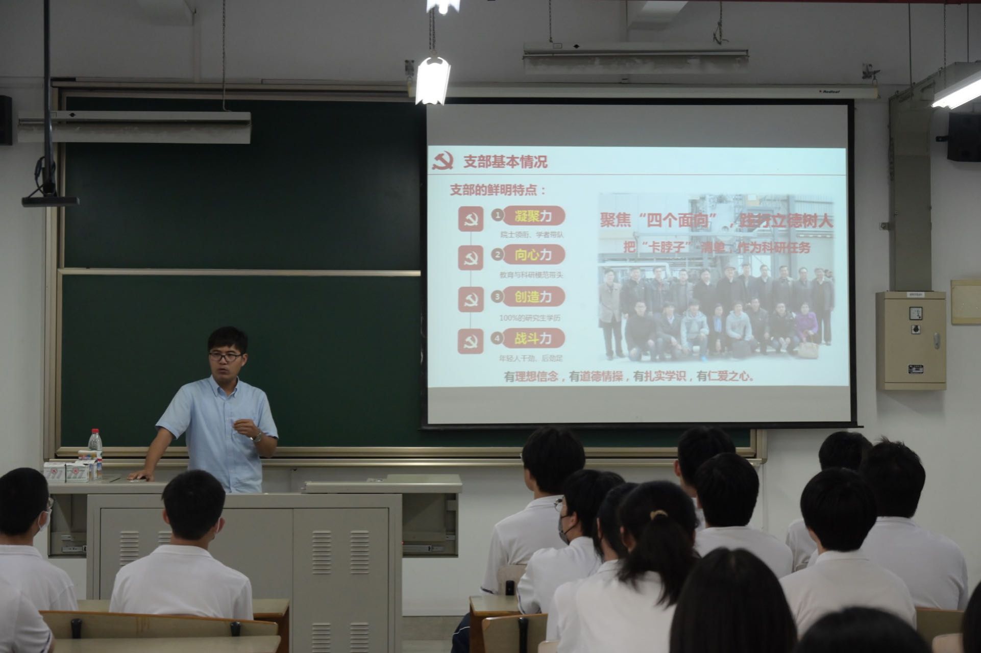 特殊钢精炼教工党支部副书记张振强同志对ac米兰官网中文网站附属中学的老师和同学们的到来表示热烈的欢迎,党支部书记玄伟东同志详细介绍特殊钢精炼教工党支部的发展历程、建设特色和所获成绩,祝福同学们明年能够考上理想的大学。材料学院招生宣传组徐京同志详细解读了招生政策,介绍了材料学院办学特色、专业设置等。在师生互动环节,2023年上海市优秀毕业生喻金涛与同学们分享自己的高中学习和生活经历,并就同学们共同关心的专业报考、大学生活以及中学生如何做科研等问题,予以精彩回答,现场气氛十分热烈。