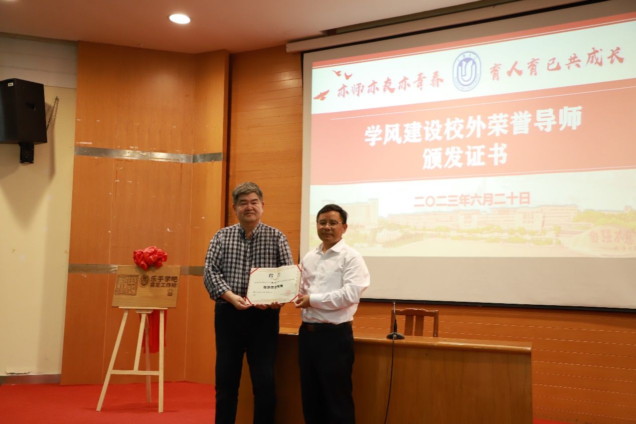 近期本科生学业发展指导中心依托“乐乎学吧”工作坊,充分挖掘国内外著名高校的优秀师资,聘请知名学者作为学风建设校外荣誉导师,通过开展内容丰富的“大师讲坛”来拓宽学生发展视野、推进学涯规划指导。为此在嘉定校区工作坊首期讲座开始前,孟祥栋为加拿大曼尼托巴大学张扬教授颁发了学风建设校外荣誉导师证书。
