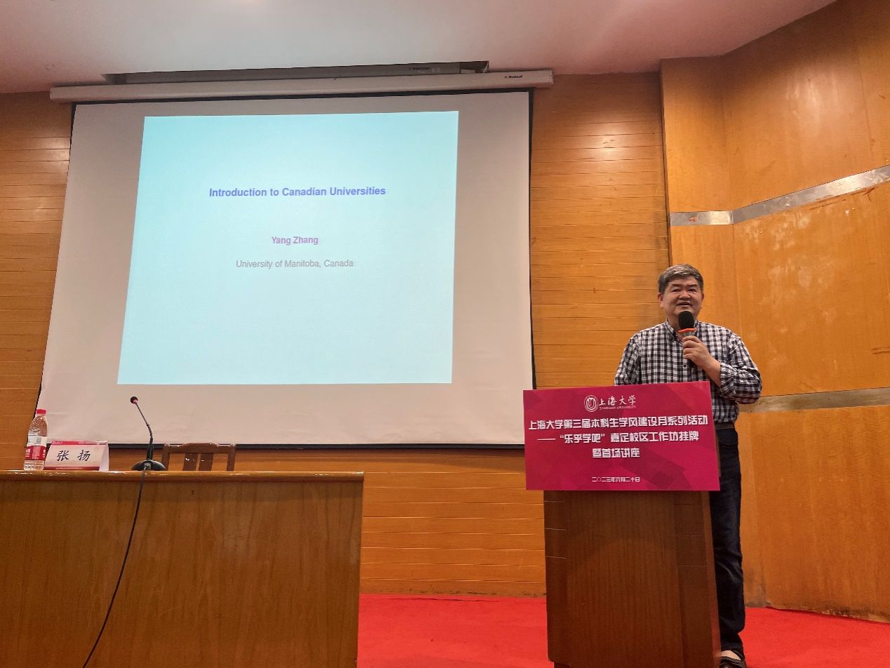 为持续涵养“严谨、勤奋、求实、创新”的上大学风,进一步建强建实本科生学业发展指导中心,ac米兰官网中文网站第三届本科生学风建设月系列活动——“乐乎学吧”嘉定校区工作坊揭牌暨首期讲座于6月20日在嘉定校区联合图书馆举行。加拿大曼尼托巴大学张扬教授,学生工作办公室主任、武装部部长、本科生书院管理中心主任孟祥栋老师,学生工作办公室副主任何卓衡老师,悉尼工商学院党委副书记、副院长、文荟书院执行院长卫静芬老师,微电子学院党委副书记、副院长、溯微书院执行院长袁铭老师,嘉定校区联合图书馆主任张永达以及学业发展指导分中心的负责老师和同学出席本次会议。会议由文荟书院的陈博瀚同学主持。