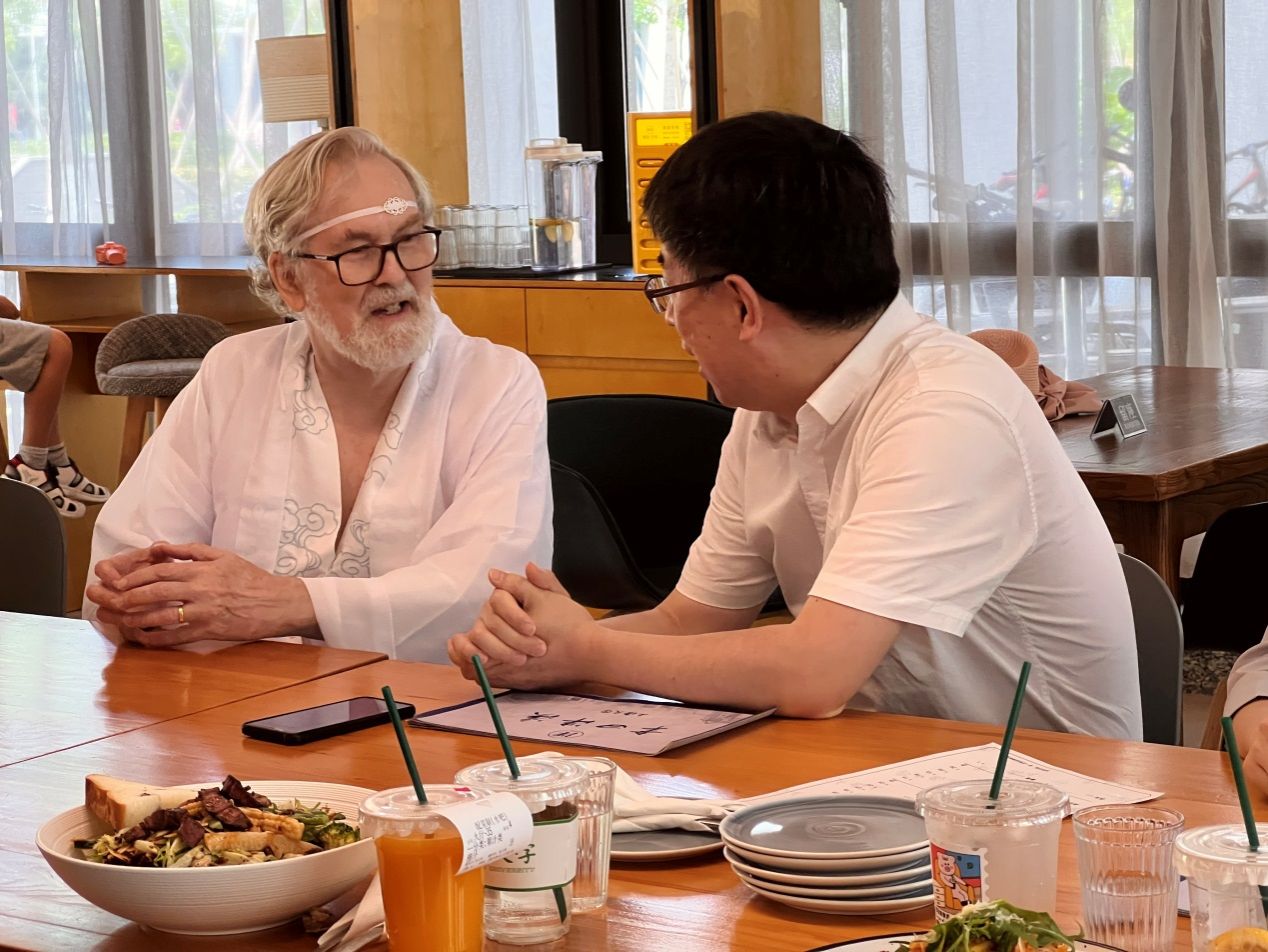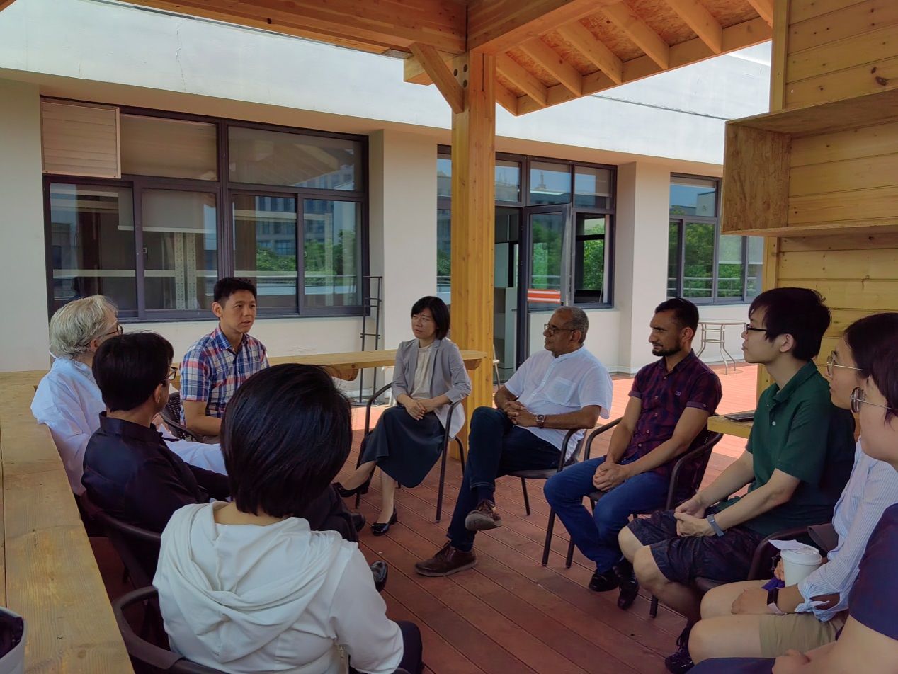 之后,外教们参观了宝山校区土木楼二楼的“小林荫”木廊亭,并与木廊亭构建者舒展老师深入交流。木廊亭充分展现了ac米兰师生对低碳建筑和可持续发展的理念构思与实践探索。对中外建筑的生态概念和文化呈现外籍教师们展开了热烈讨论。