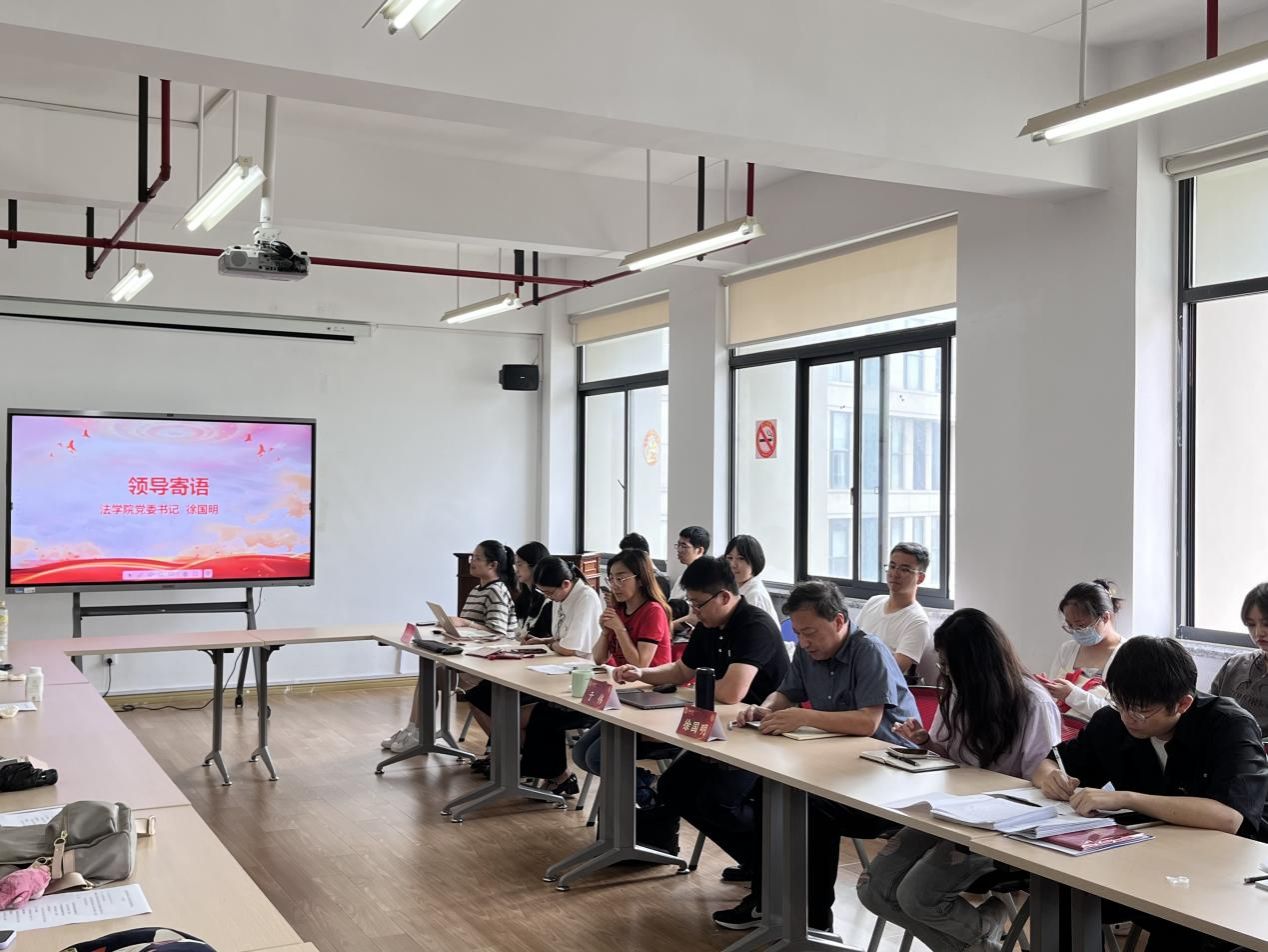 6月20日下午,ac米兰官网中文网站法学院2023届毕业生党员教育大会于法学院504会议室顺利举行。法学院党委书记徐国明,法学院党委副书记、副院长于伟,党委组织员蒋英燕,思政辅导员、法学院2023届全体毕业生党员参加了会议。会议由2022级硕士研究生高越主持。