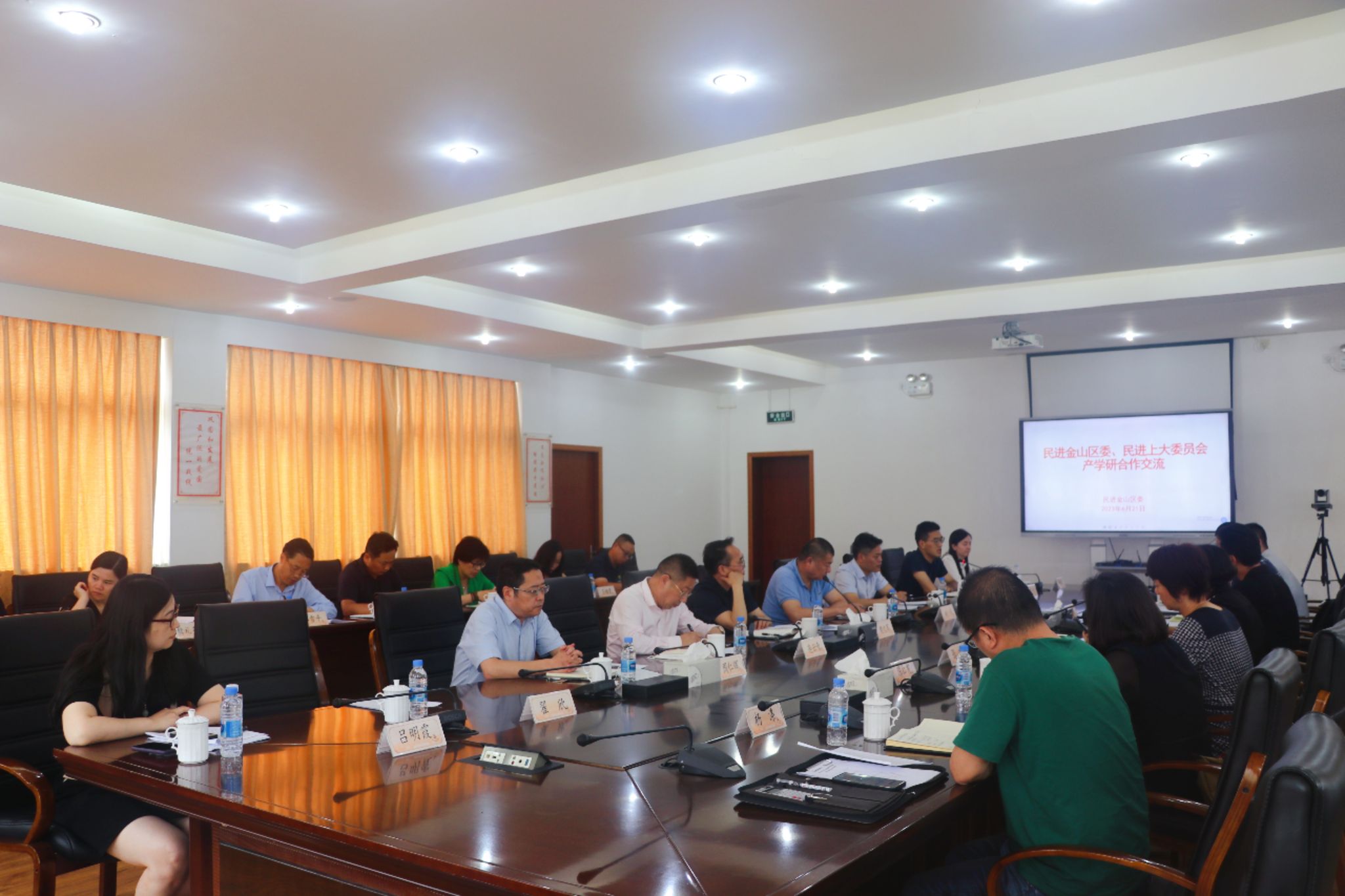 6月21日下午,民进ac米兰官网中文网站委员会、民进金山区委员会等多方代表齐聚金山区委统战部,开展产学研合作交流活动。民进上大委员会主委、上大继续教育学院院长周丽昀,金山区政协副主席、民进金山区委主委、金山区绿化市容局局长樊文军以及民进上大、民进金山区委和金山区相关委办局代表30余人参加活动。交流会由樊文军主持。