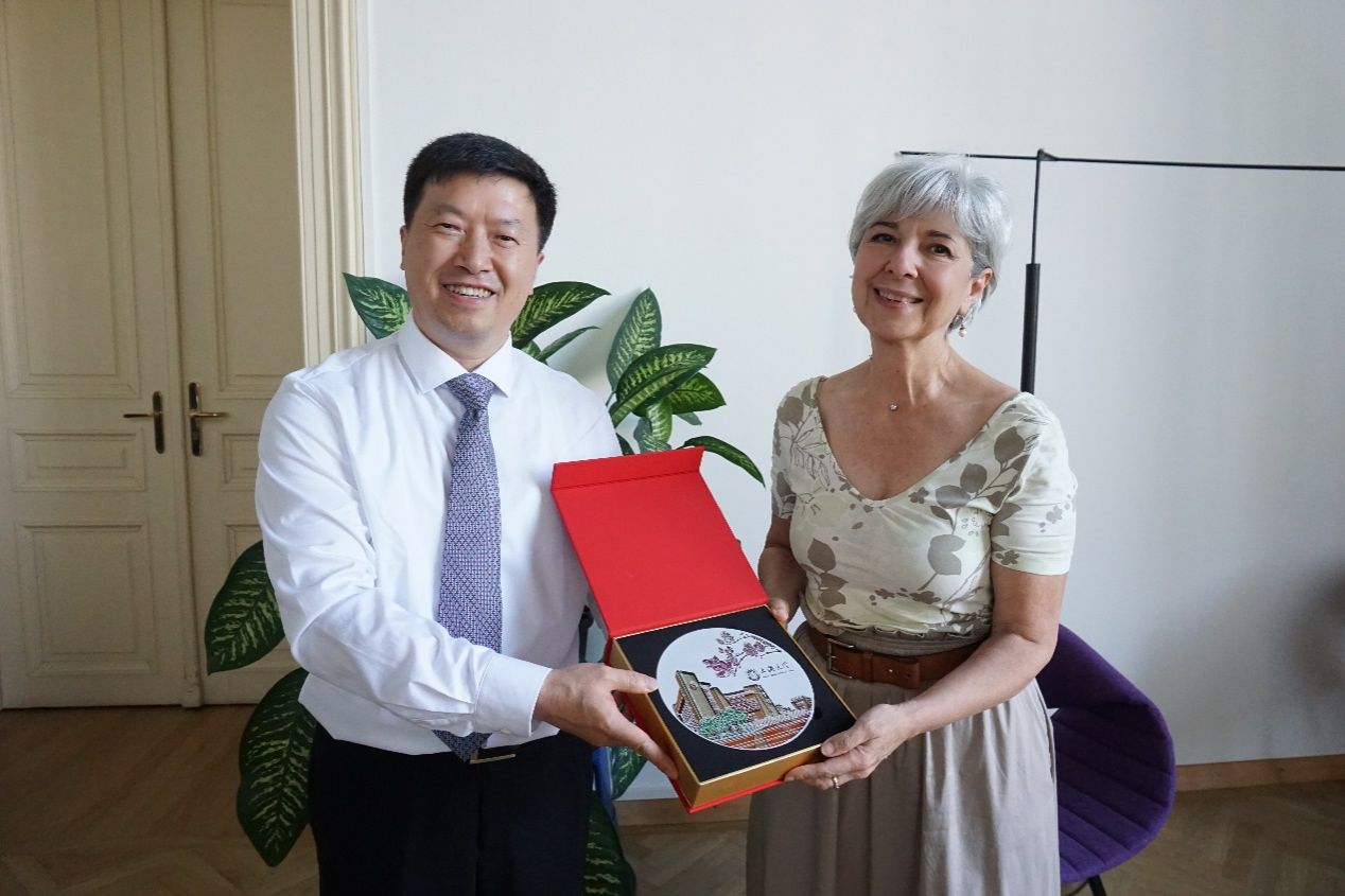 刘校长赠与维也纳副校长ManuelaBaccariniac米兰纪念品