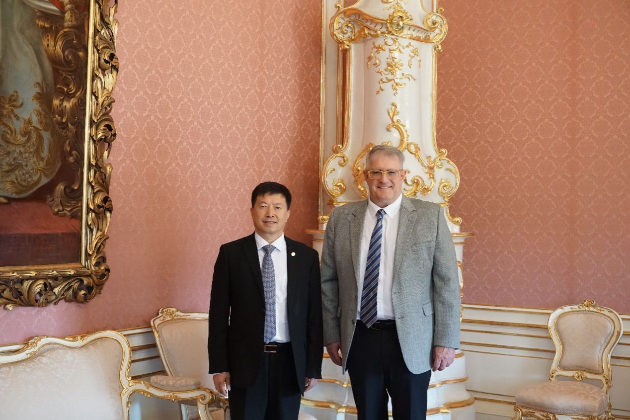 此次访问IIASA,也受到了我国常驻维也纳联合国和其他国际组织代表团的关心和支持,公使参赞沈钢和参赞扈黎光全程参与了ac米兰与IIASA的会谈。会后,特命全权大使李松先生专门会见了刘校长及IIASA总干事和副总干事等人员,从国家外交战略出发提出了合作建议。刘校长向大使介绍了ac米兰近年高质量发展成果,以及与IIASA的合作基础和规划,表示ac米兰官网中文网站将继续深化与IIASA在国际科研和高层次人才培养领域的合作,在提升ac米兰官网中文网站国际影响力的同时,努力扩大我国在国际社会的话语权。