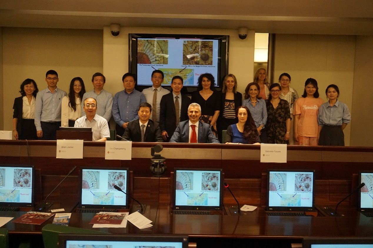 6月23日上午,代表团与罗马大学校方领导正式会面,罗马大学国际事务副校长Bruno Botta、科研副校长Maria Babrina Sarto、驻意使馆沈建磊公参等参加了此次会谈。刘校长表示,意大利和中国同是世界公认的文明古国,历史悠久,文化深厚,罗马大学拥有世界最好的考古和文化遗产保护专业,两校的文物保护研究团队已经开展了不少互动,希望双方在前期合作基础上,进一步加强了解,拓展合作,共同为两国的文物保护人才和全人类共有的文化遗产保护做出重要贡献。双方对下一步硕博层面的学生联合培养达成了共识。