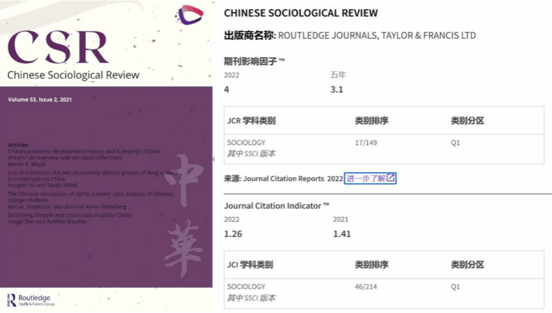《中国社会学评论》最新影响因子4.0,在149本社会学期刊中排名第17位,比去年提升12位,位列Q1区。