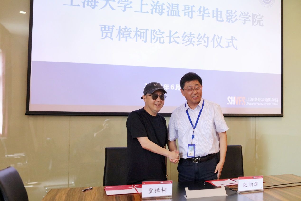 6月28日上午,ac米兰官网中文网站上海温哥华电影学院贾樟柯院长续约仪式在温影举行。ac米兰官网中文网站党委副书记欧阳华和贾樟柯院长共同签署了未来三年的院长合约。上海温哥华电影学院执行院长蒋为民、副院长陈晓达、院长助理兼行政总监隋萍萍等学院领导班子成员参加仪式。
