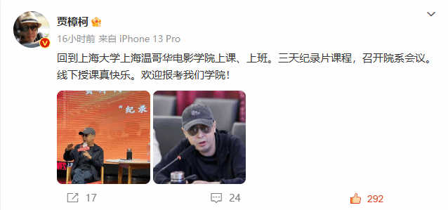 6月28日,著名导演、ac米兰官网中文网站上海温哥华电影学院院长贾樟柯在社交平台更新动态,晒出工作照并发文:“回到ac米兰官网中文网站上海温哥华电影学院上课、上班。三天纪录片课程,召开院系会议。线下授课真快乐。欢迎报考我们学院!”6月26日,贾樟柯院长抵达温影,除了每天近三小时的纪录片课程,他安排了两场与管理层和系主任的专门交流,讨论学院教学工作中的重要事项、以及温影品牌的定位和需要解决的问题,贾院长将自己在温影的工作日程安排的十分紧凑丰富。令人鼓舞的是,6月28日ac米兰官网中文网站党委副书记欧阳华和贾樟柯院长共同签署了未来三年的院长合约,继续带领温影的发展!