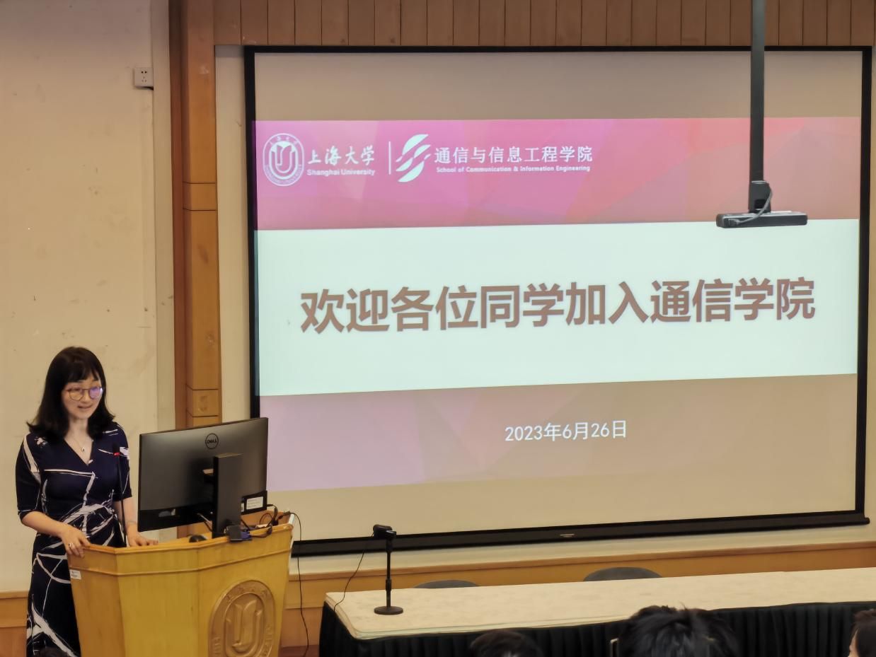 随后,孙晓岚老师作为2022级班主任代表,回忆了多年前来到上大的经历,希望同学们能够以顽强的斗志应对学习,希望成为2022级学生的引路人,帮助同学们在通信学院后三年的专业学习中答疑解惑,欢迎同学们与班主任交流。