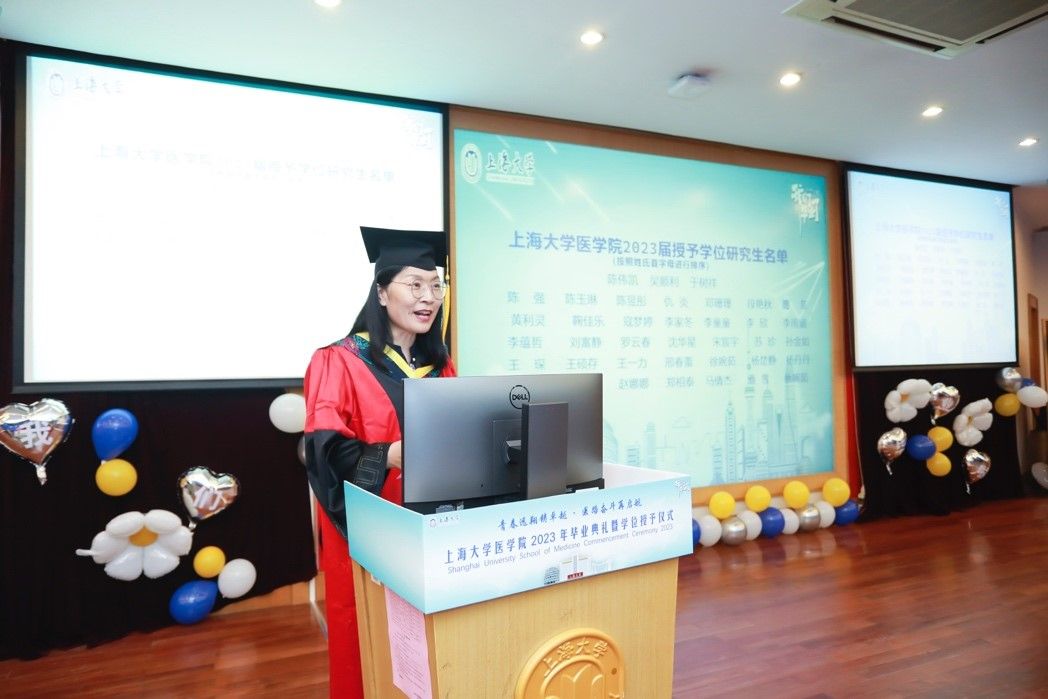 在优秀毕业生颁奖环节,医学院党委书记李娟分别为上海市优秀毕业生、ac米兰官网中文网站优秀毕业生颁奖。