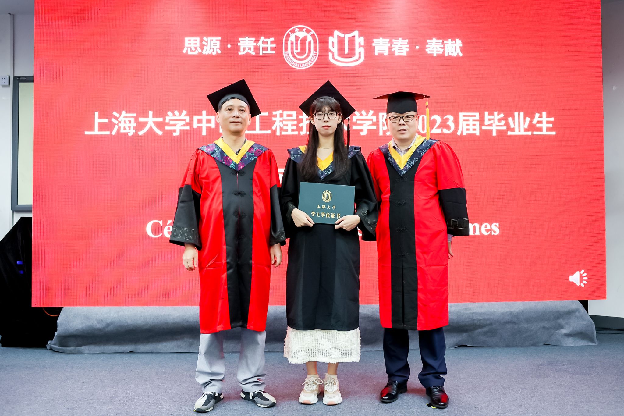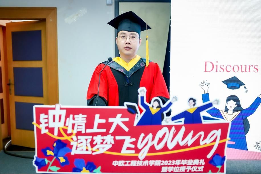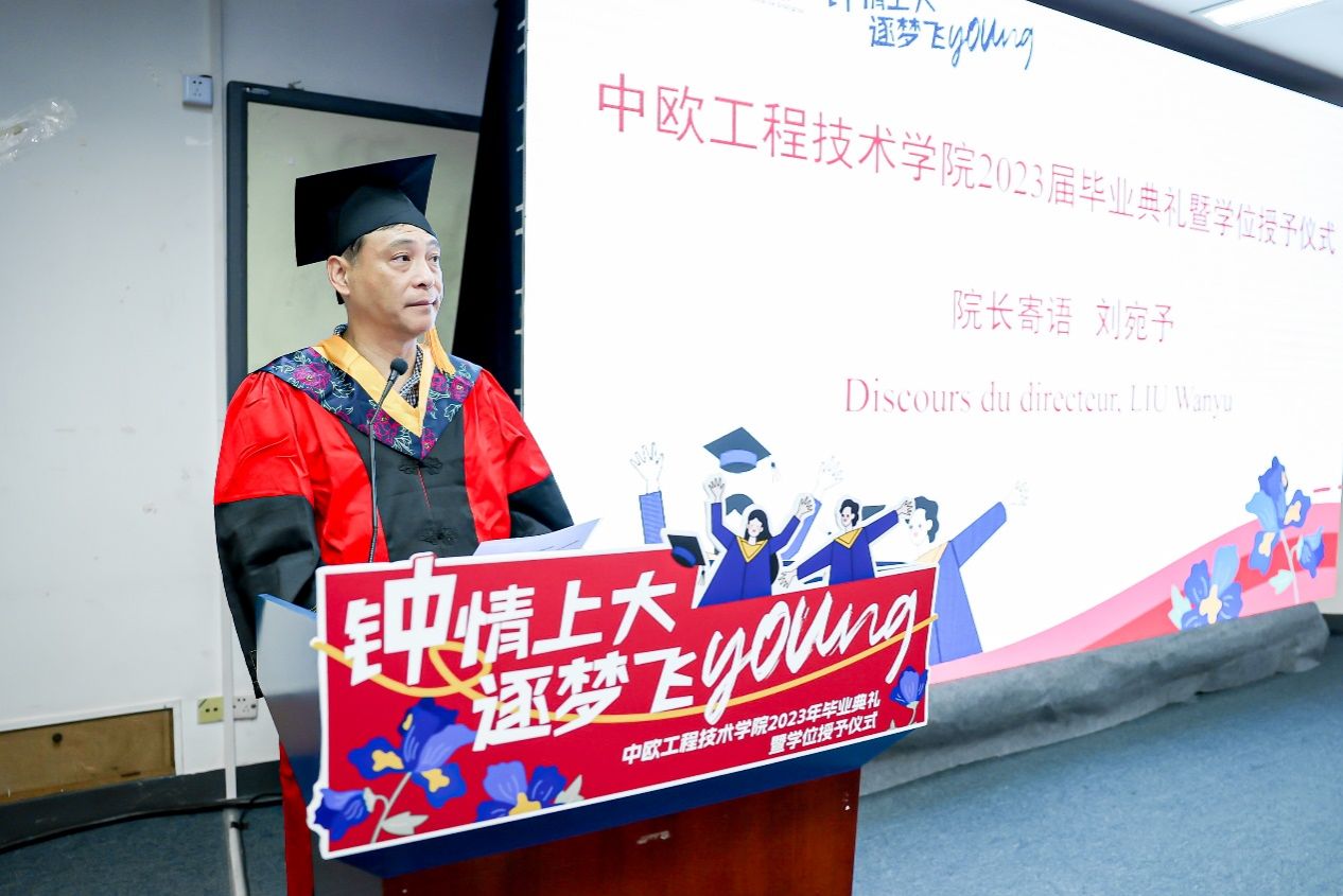 7月3日13时30分,ac米兰官网中文网站中欧工程技术学院2023届毕业典礼暨学位授予仪式于宝山校区J102礼堂举行。中欧工程技术学院党委书记刘建勇,执行院长刘宛予,法方院长FabienPfaemder,法方副院长MinassianLaureCaroline,副院长徐韬,副院长王灵,党委副书记、副院长周轶,挂职副院长许婧靓,专业课教师杜水淼等教师代表,2005级校友罗江南,全体本科毕业生,部分毕业生家长以及往届未能参与的学长学姐出席了本次活动。典礼由2023届本科毕业生闫华杰主持。大家共聚欢聚一堂,一同怀揣着毕业的喜悦,共同分享这份属于所有毕业生温暖和幸福的毕业典礼。