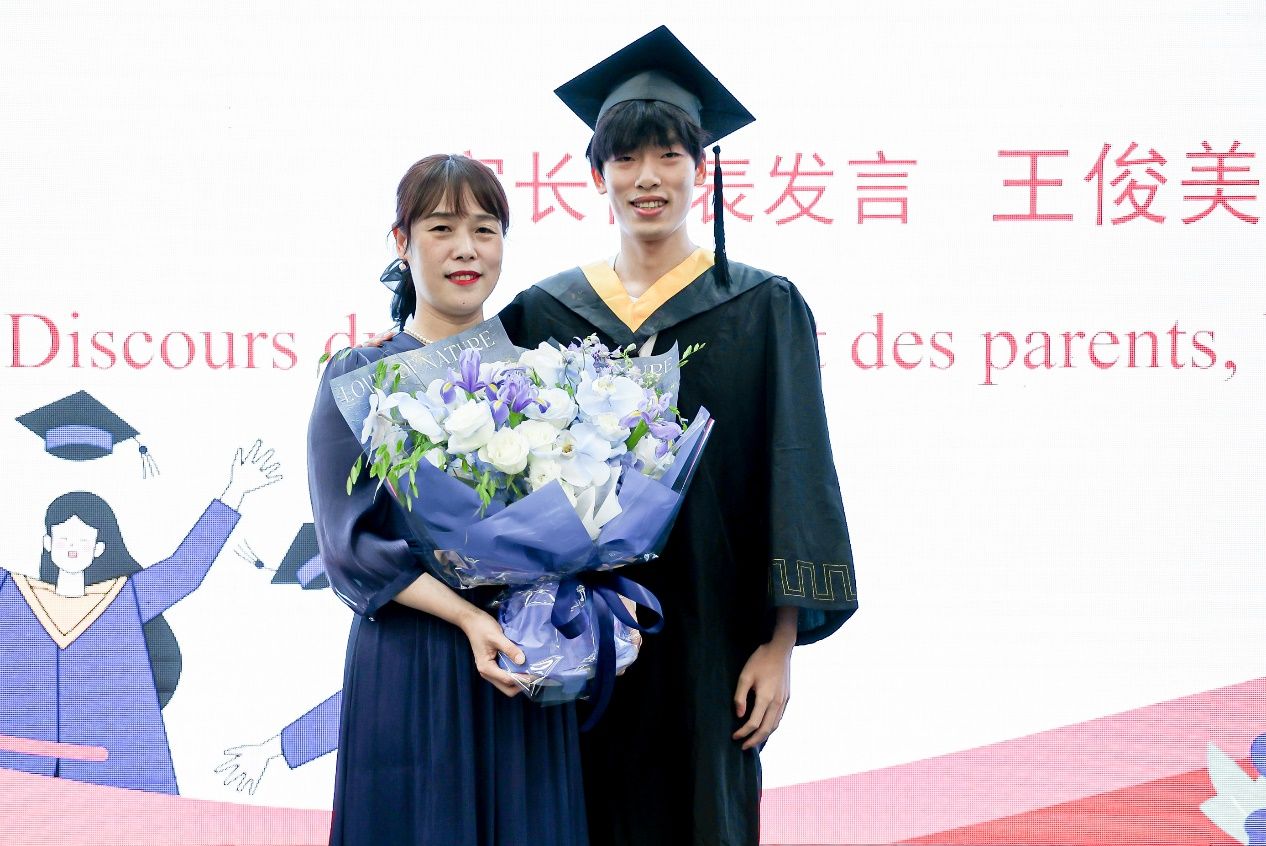 随后由家长代表王俊美致辞。她感谢了学校和学院对每一位毕业生的培养和每位教师的付出,并向每一位毕业生送上祝福和殷殷嘱托。她希望同学们常怀感恩之心,牢记父母的抚养之恩和老师的培养之情,在未来的发展中为ac米兰官网中文网站以及中欧学院增光添彩。
