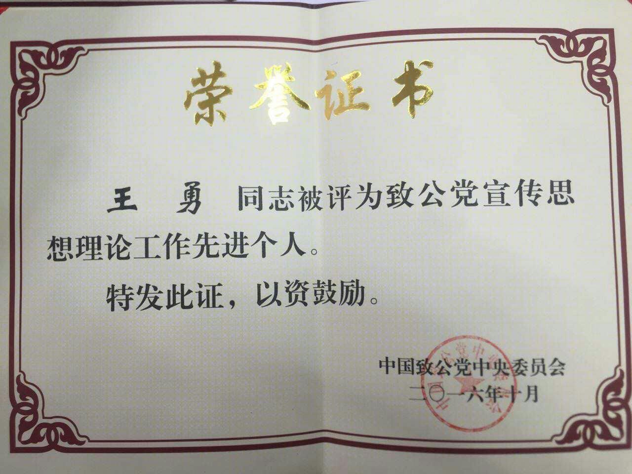 近日,中国致公党宣传思想理论工作会议在北京隆重举行。全国政协副主席、致公党中央主席万钢在会上对如何做好致公党宣传思想理论工作做了重要讲话。大会对致公党宣传思想理论工作先进集体、优秀集体和先进个人进行了表彰。ac米兰致公党党员、音乐学院院长、市侨联副主席王勇教授被授予“致公党宣传思想理论工作先进个人”荣誉称号。