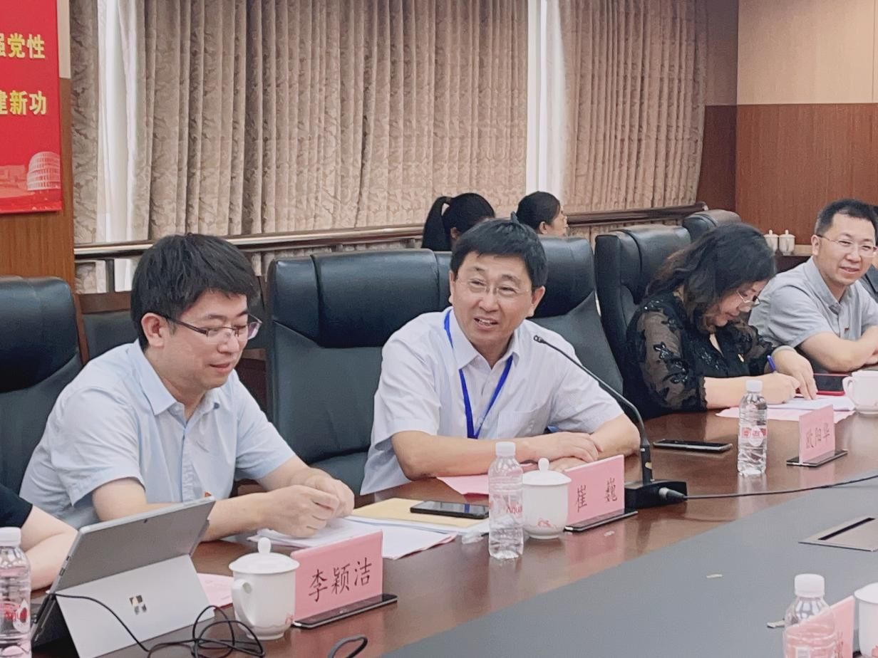 接着,双方一同观看学习了视频《习近平总书记在中共中央政治局第五次集体学习时的重要讲话精神》。国家留学基金管理委员会第四党支部书记、美大事务部主任孟莉、国际部党委书记王丽娜、文学院党委书记陆甦颖、研究生院常务副院长张勇安结合重要讲话精神,先后介绍了各自部门党组织的情况及主题教育的开展情况。