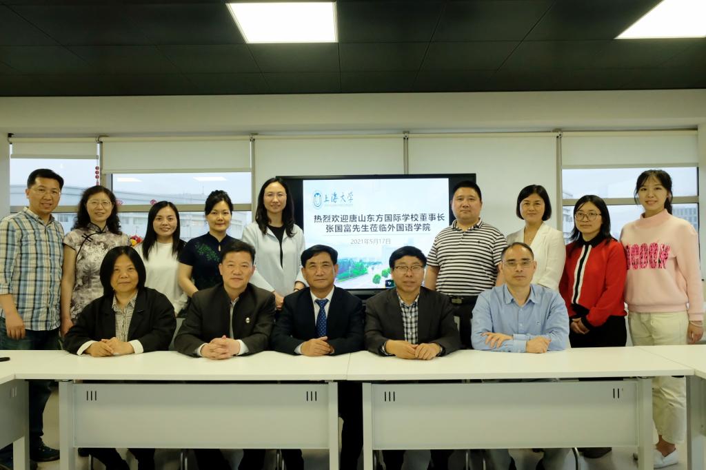 5月17日下午,外国语学院国学双语研究团队在校本部C501会议室开展了第二次教研活动。团队导师赵彦春教授邀请到唐山东方国际教育集团张国富董事长与团队进行深入交流。本次活动受到学院的高度重视,学院党委书记邓志勇、院长尚新、党委副书记贾小琴、副院长戴朝晖、副院长唐青叶、工会主席张建琴、英语系党总支书记陈秀猛均到会参与交流、讨论。