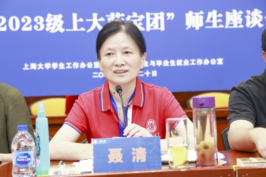 8月20日下午,“相逢在上大”——2023级上大蓝宝团师生座谈会在宝山校区乐乎新楼思源厅举行。校党委常委、副校长聂清,党委宣传部副部长(融媒体中心主任)吴铭,招生与毕业生就业工作办公室主任陆瑾,学生工作办公室主任、武装部部长、本科生书院管理中心主任孟祥栋,教务部综合办公室主任黄欢,学生工作办公室副主任、本科生书院管理中心副主任马成瑶出席座谈会。