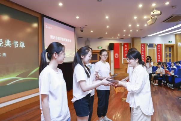 “红色传承、经典阅读、实践育人”是秋白书院的育人特色。秋白书院全程导师代表沈燕为结对的宿舍新生们也现场赠送了书院百卷经典书单和文创笔记本,希望同学们入学后能够多读书、读好书,在品读经典中收获人生的智慧。