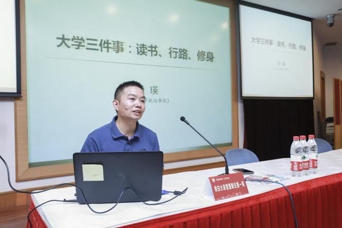 本次新生见面会的后半场,秋白书院院长、伟长学者、社会学系主任肖瑛教授为同学们带来了题为《大学三件事:读书·行路·修身》的秋白大讲堂暨开学第一课。