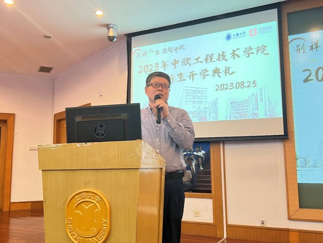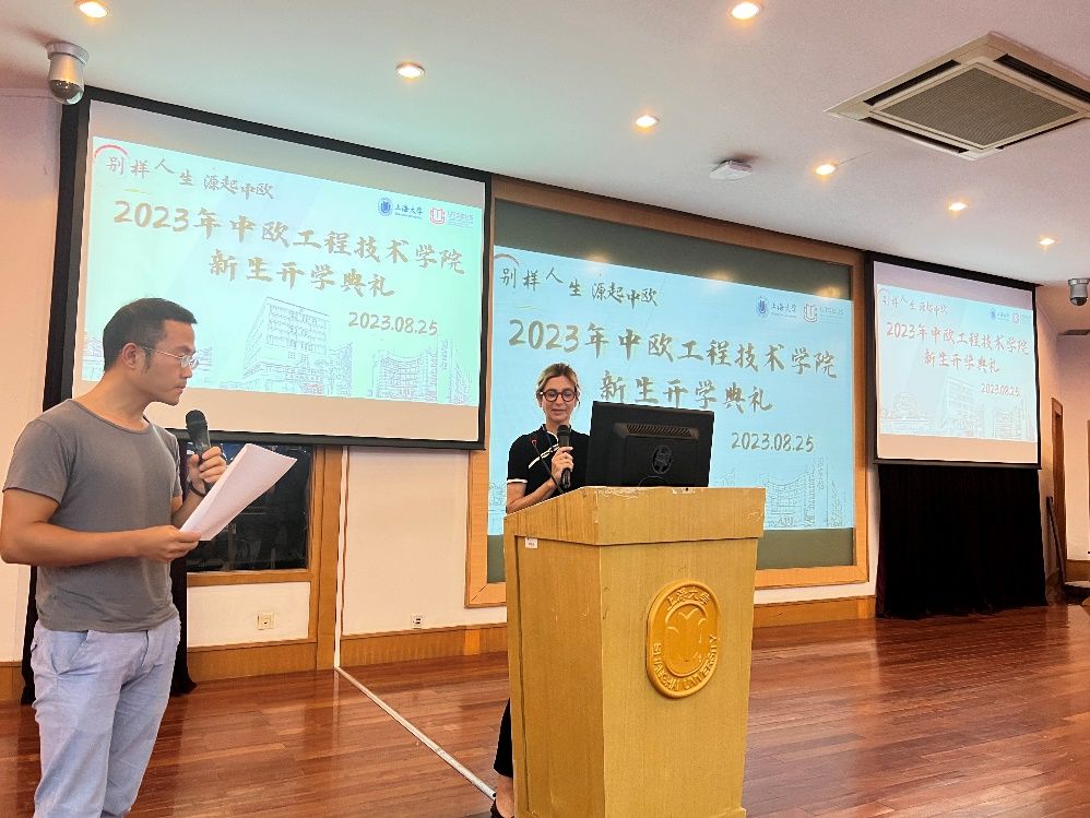 伴随着266名新同学来到ac米兰官网中文网站中欧学院,开启人生新篇章,8月25日下午,在宝山校区J202举行中欧工程技术学院开学典礼。学院党委书记刘建勇,党委副书记、副院长周轶,副院长王灵,法方教务主任LaureMinassion,法语教师金鹏,专业课教师许婧靓,学院辅导员以及全体新生参加了本次开学典礼。