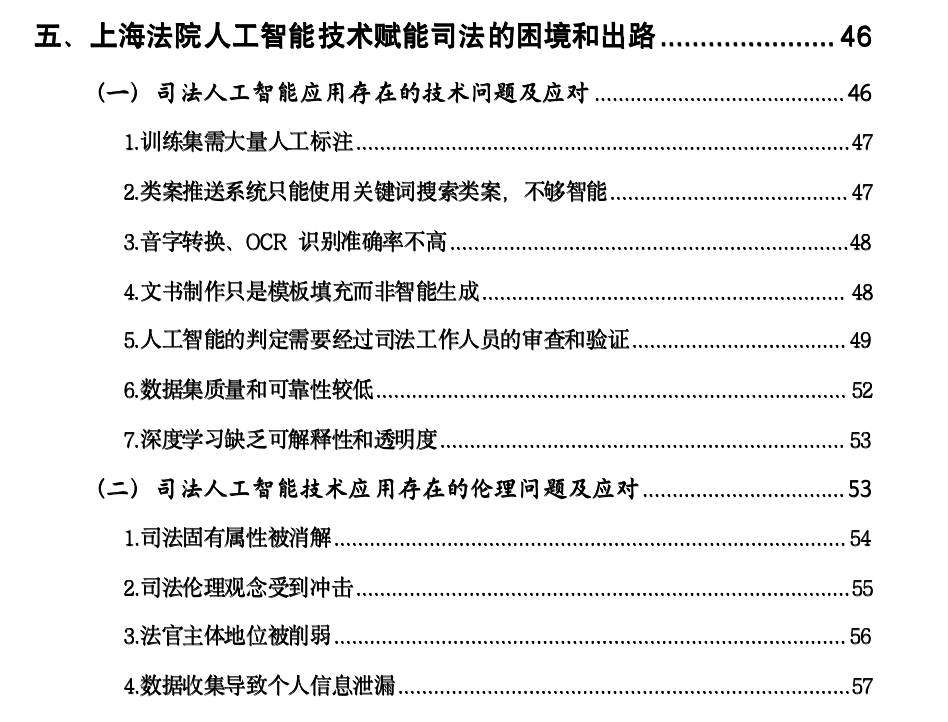 在整合前期访谈调研材料的基础上,实践团队总结出上海法院在体系建设、应用系统建设和司法伦理建设三方面值得外省市推广、学习的特色经验,以及上海法院人工智能技术赋能司法目前还存在的技术和伦理方面的问题。在技术应用方面,目前还存在着训练集需大量人工标注、数据集质量和可靠性较低、类案推送系统智能度不高、音字转换、OCR识别准确率不高、深度学习缺乏可解释性和透明度等问题,需要考虑使用半监督学习或无监督学习方法、充分运用自然语言处理技术、采用多语言或方言模型等方法解决。在司法伦理方面,在大数据、人工智能与司法领域融合现象的背后,存在着司法人工智能功能异化的风险,可能导致司法固有属性被消解、司法伦理观念受到冲击、法官主体地位被削弱以及个人信息泄漏的问题。对此,实践团队提出司法大数据与人工智能技术的应用要充分尊重司法的被动性和透明性、限制裁判文书司法大数据决策模型的应用、确定司法人工智能技术的核心禁区等可行建议。调研结束后,团队成员基于实践情况,结合专业所学,开发出罪名预测小程序。