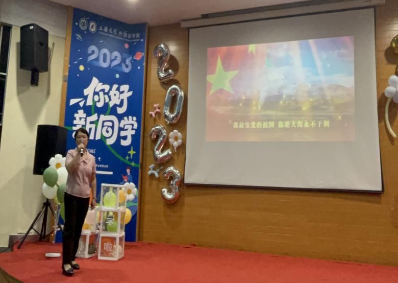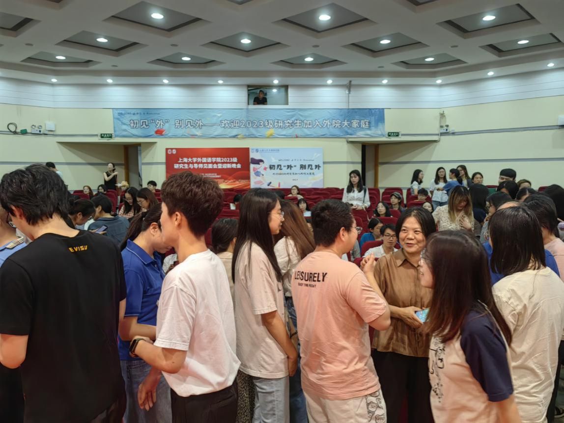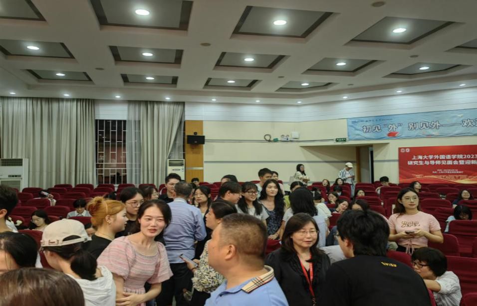 9月7日晚上6点,外国语学院2023级研究生与导师见面会暨迎新晚会在嘉定校区图书馆报告厅举行。外国语学院党委书记吴蔚,党委副书记、院长尚新,党委副书记、副院长贾小琴,副院长戴朝晖、唐青叶、阚怀未,英语系主任张建琴,日语系主任赵莹波,法语系主任王文新与学院研究生校内外导师三十余人专程赴嘉定校区与学院2023级研究生新生们共同参加此次活动。
