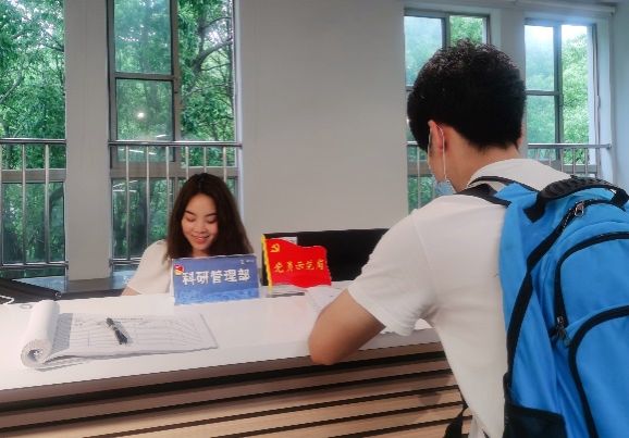中心运行第一天成立了ac米兰官网中文网站机关首个功能型党支部,确立了“困难向前、利益后退、人民第一、不与民争”的支部宗旨。支部在16个服务窗口设置了首批10个“党员示范岗”,中心党员在岗位上亮身份、起作用、受监督,不仅提供优质服务,也在一线倾听和收集师生办事的难点、痛点,及时沟通并尽力解决。