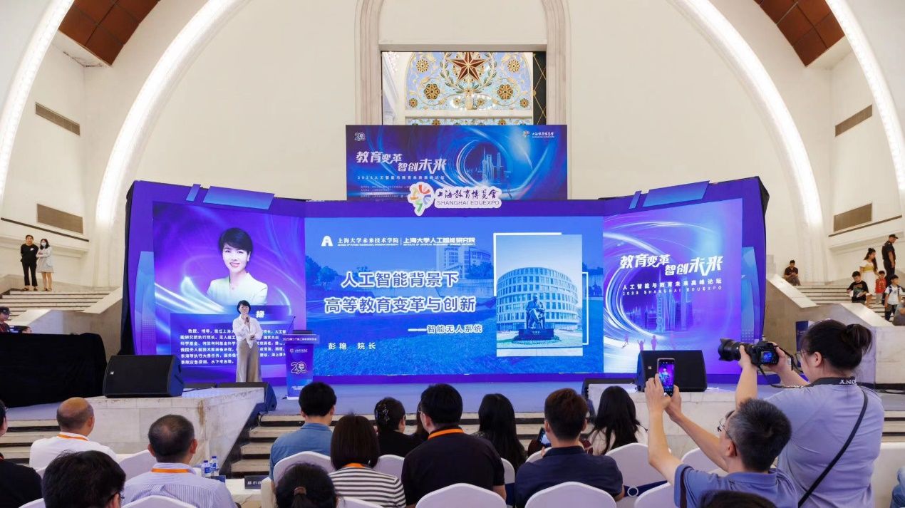 彭艳院长以《人工智能背景下高等教育变革与创新——智能无人系统》为题在“人工智能与教育未来”高峰论坛上作专题报告。彭院长聚焦智能无人系统领域的教育问题,讲述了人工智能在教育应用前沿领域发展以及科教融合、产教融合的“上大方案”。