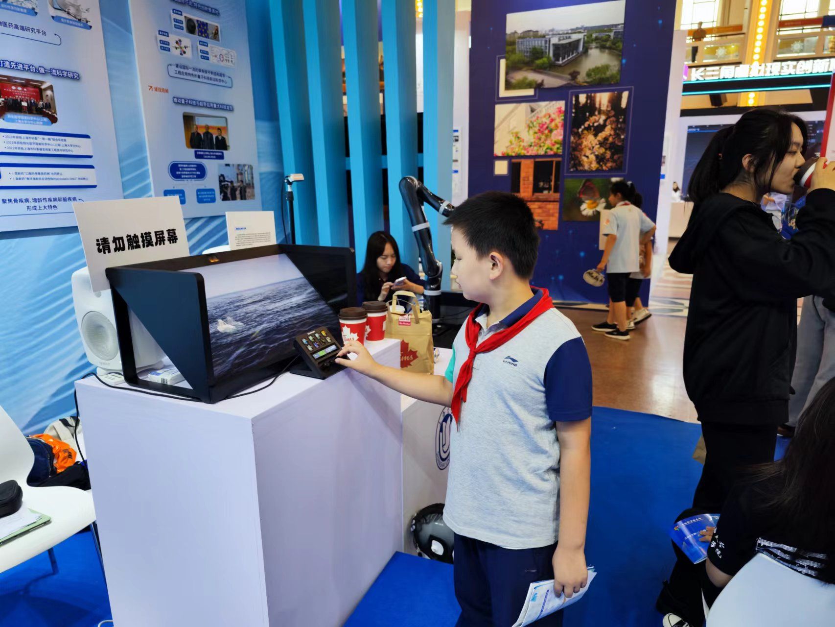 9月15日,第二十届上海教育博览会在上海展览中心正式开幕。未来技术学院精海智能系列无人艇3D展项亮相市级主题展区“创新策源强支撑”S5ac米兰官网中文网站展位,吸引了众多教育界同行和市民观众前来了解学院科研成果。开幕式后,本届教博会“人工智能与教育未来”高峰论坛同期开幕,彭艳院长作专题报告。