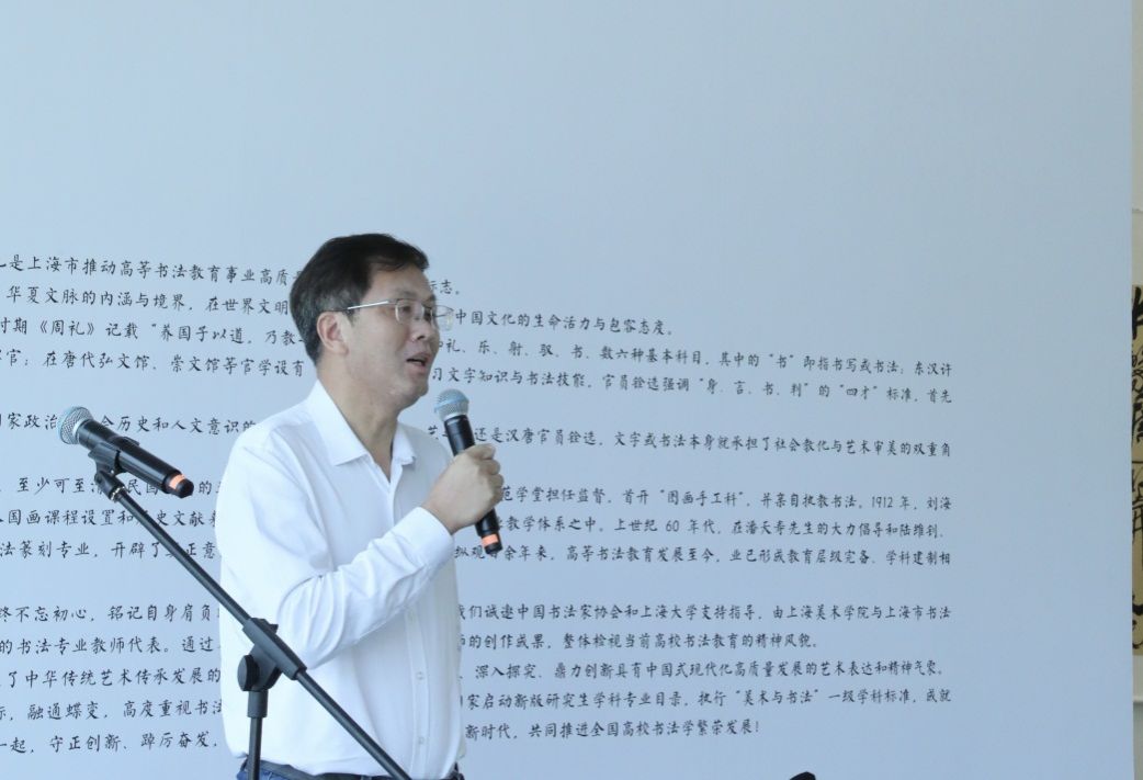 校党委常委、总会计师苟燕楠在致辞中指出,“上美书峰——全国高校书法教师作品展”是一次弘扬优秀传统文化、打造“新海派”美术高地,集中展示全国高校书法教师风采的展览。希望展览能够成为促成书法文化传承与创新的优质平台,携手推动高校书法教育高质量发展。