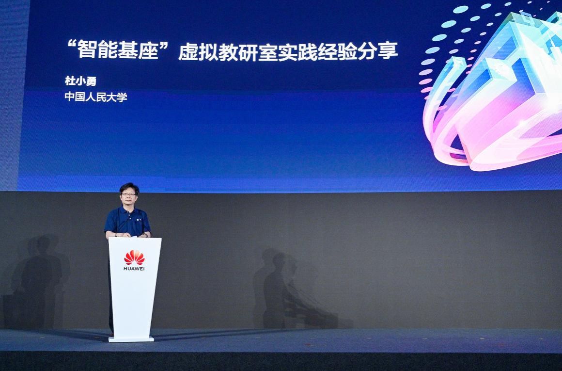 随后,来自中国人民大学的杜小勇老师进行了分享,他指出“智能基座”以最新的技术培养人才,以创新的人才引领产业。在高校学习环境中,以虚拟教研室为媒介进行数智型人才的培养。