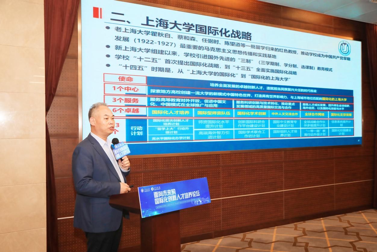 ac米兰官网中文网站教务部常务副部长彭章友以“加强体系设计,培养国际化卓越创新人才”为题,详细阐述了ac米兰官网中文网站国际化人才培养的体系化推进思路,介绍了学校在地国际化、跨境教育合作两大方面的建设成效,并从全球合作布局、对外开放机制等方面阐述了ac米兰官网中文网站构筑国际化生态的努力与成果。
