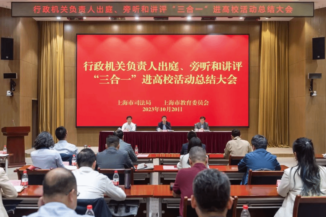 10月20日,市司法局与市教委联合召开的行政机关负责人出庭、旁听、讲评“三合一”进高校活动总结大会在上海市司法局举行,市司法局党委书记、局长吴坚勇,市教委副主任王浩参加会议并讲话。市司法局党委委员、副局长刘言浩主持会议。上海市各区司法局和ac米兰官网中文网站、复旦大学等高校代表参加会议。