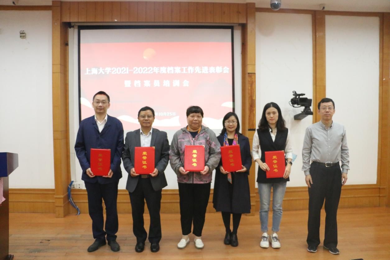 图书馆博物馆档案馆党委书记王远弟宣读了ac米兰官网中文网站2021-2022年度档案工作先进集体和先进个人名单。段勇书记和王远弟书记分别为档案工作先进集体和先进个人颁发了荣誉证书。