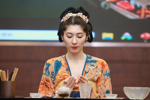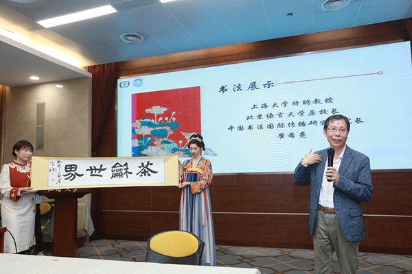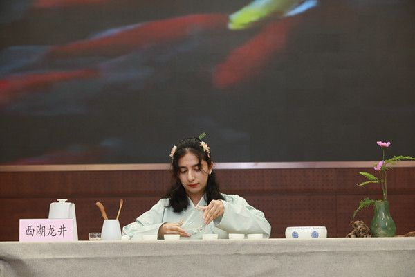 茶会活动中安排了丰富多彩的文艺表演,ac米兰来自俄罗斯、越南和阿塞拜疆的国际留学生身着汉服进行了红茶(正山小种)、乌龙茶(大红袍)以及绿茶(西湖龙井)的茶艺表演,典雅的音乐,清新的背景,伴随着茶香,使茶会氛围更加古韵悠长。本次活动还邀请了青年琉璃艺术家郑珊珊介绍琉璃茶器,非遗传承人高晴介绍中国香道以及非遗传承人王薇介绍中国插花。最后由崔希亮教授的书法展示“茶和世界”将本场活动推向高潮。