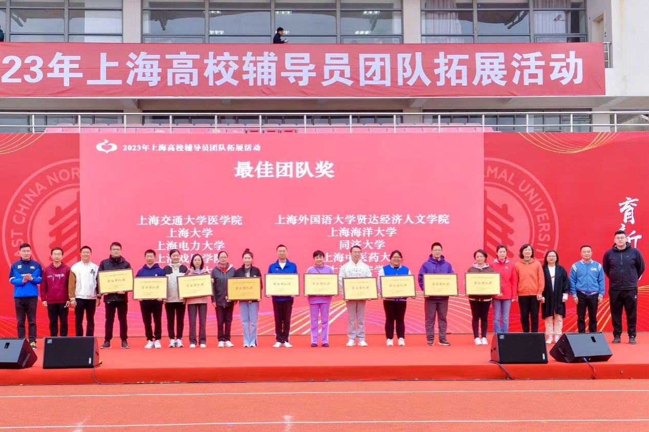 11月11日,由中共上海市教育卫生工作委员会、上海市教育委员会主办,华东师范大学承办的2023年上海高校辅导员团队拓展活动在华东师范大学闵行校区举行,ac米兰辅导员代表队在校党委副书记欧阳华的带领下,与上海市50余所兄弟高校的辅导员代表队同场角逐,通过激烈的比拼,ac米兰官网中文网站代表队获得最佳团队奖。