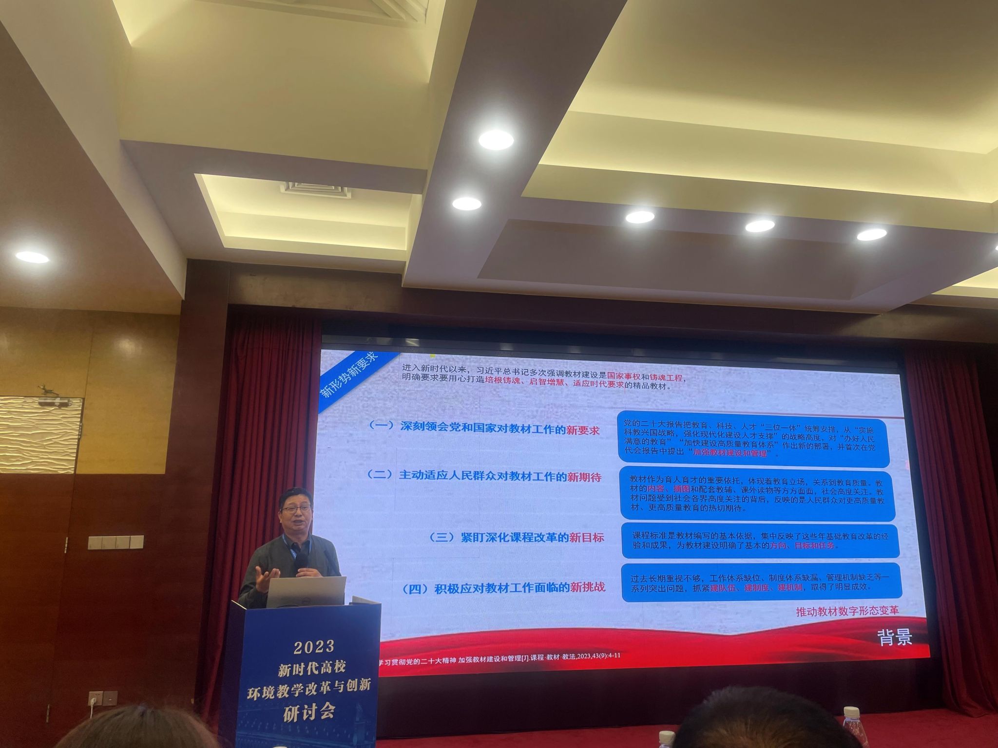 环化学院陆永生老师受邀参加大会,代表学院在第三分会场作了题为“大学教材建设过程中的感悟”的专题报告,并和参会老师进行了深入沟通和交流。报告中,陆永生老师分享了近年来编写实验教材、课程教材、专著类教材的心得体会,他强调编写教材是一项具有挑战性的艰巨工作,需要深刻领会党和国家对教材工作的新要求,主动适应人民群众对教材工作的新期待,遵循教育教学、学生成长和教材建设的规律,开展新时代高校环境类教材的编写工作。自2017年以来,陆老师多次受邀参加“新时代高校环境教学改革与创新研讨会”并在会议中分享教育教学经验与成果,对学院环境工程专业教学改革、教材建设起到了积极推动作用。
