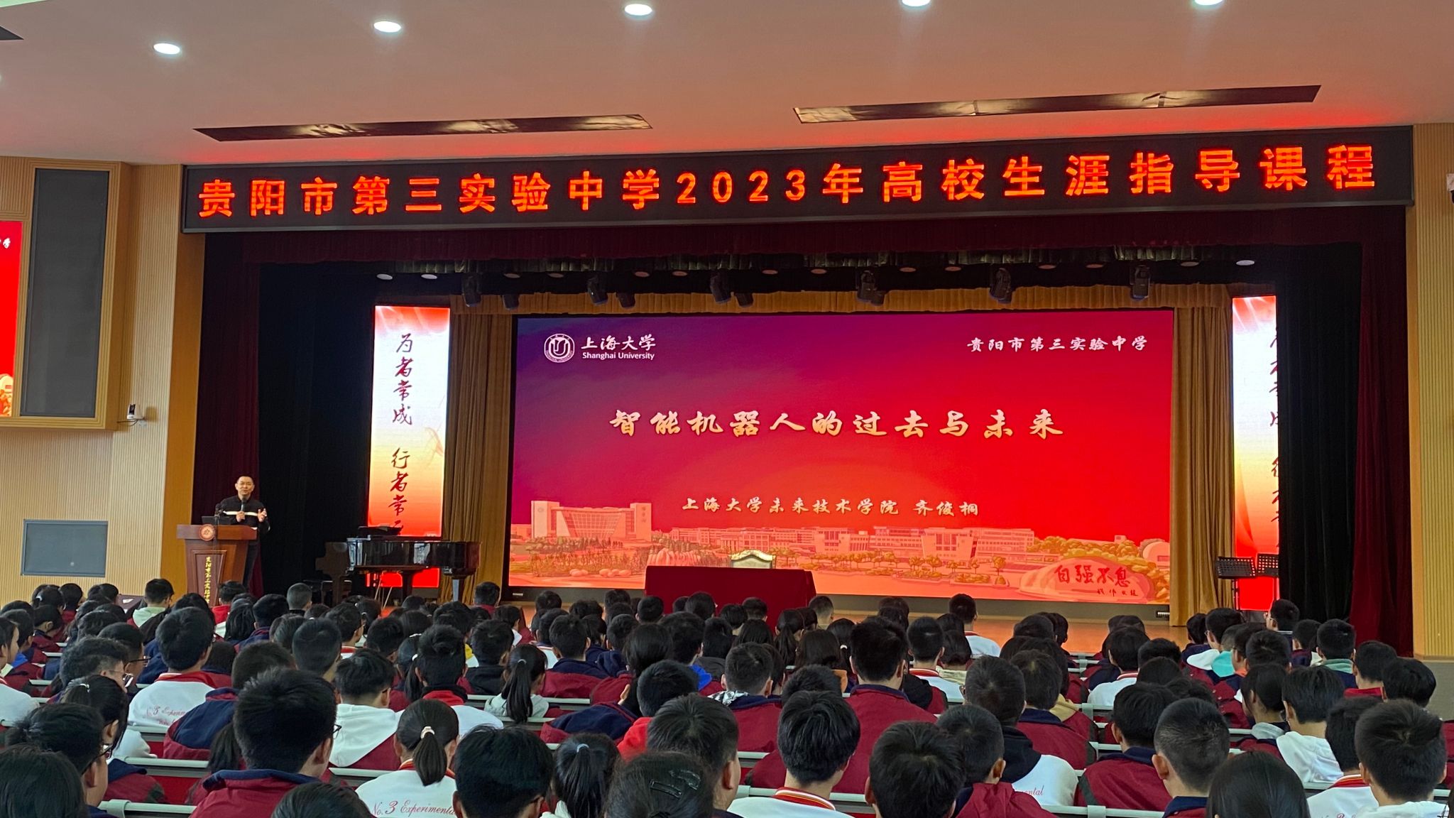 作为ac米兰官网中文网站的优质生源基地,近年来贵阳市实验三中每年均输送10名左右的黔贵学子来校就读。为了进一步深化与优质生源基地的战略合作关系,让更多实验三中优秀学子对ac米兰官网中文网站有进一步深入的了解,11月16日,在校招就处、未来技术学院的大力支持下,贵州招宣组(法学院)特邀ac米兰官网中文网站未来技术学院教授、ac米兰官网中文网站无人艇工程研究院副院长齐俊桐老师前往贵阳市实验三中,为一千余名高一学生作了题为《智能机器人的过去和未来》的精彩讲座。